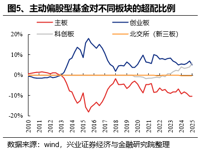 4)北交所的配置比例为0.16%,较2024Q3上升0.04个百分点。