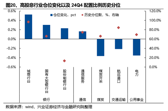 从高股息率的行业看,银行、通信服务被增持,而煤炭、航运港口、公用事业等被减持,红利板块内部出现分化。