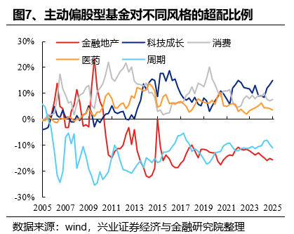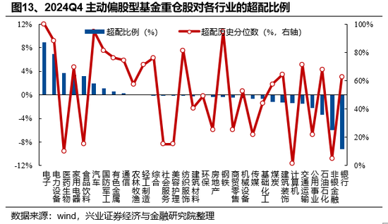 2)创业板的配置比例为18.26%,较2024Q3下降1.66个百分点,创业板超配下降,超配比例由6.89%下降至5.00%。