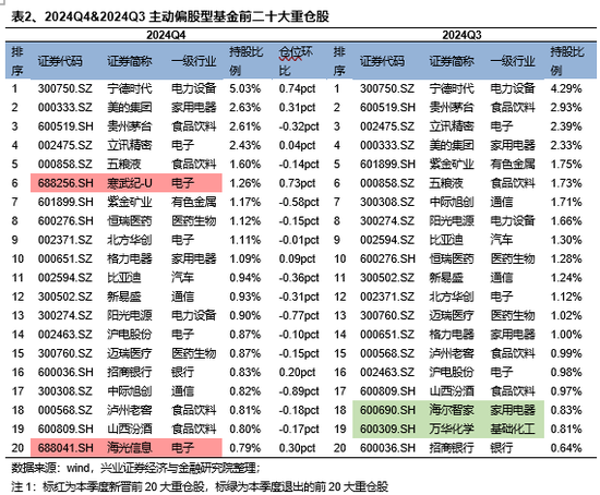 看点五:寒武纪和海光信息新晋公募前二十大重仓