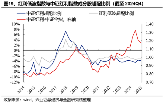 从超配比例来看,偏股基金重仓股中持有红利低波指数与中证红利指数成分股的超配比例分别下降0.01pct与0.21pct至-3.20%与-3.91%,分别处于近十年33.3%与43.5%的分位数水平。