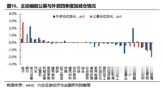 行业层面,加仓电子、银行、以及电力设备